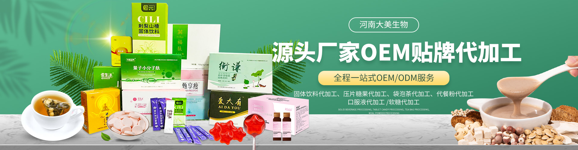 河南大美生物科技股份有限公司是從事顆粒劑、(固體飲料類),壓片糖果代加工等研發(fā)和銷售為一體的生產(chǎn)企業(yè)。公司依托自身的高科技研發(fā)隊伍和營銷團隊,為國內(nèi)外客戶提供營養(yǎng)食品各劑型和規(guī)格的研制、生產(chǎn)、配方設(shè)計、批文申報等服務(wù),并為客戶提供多種形式的流通渠道及產(chǎn)品銷售服務(wù)工作。 您的要求就是我們的使命!我們的宗旨是與客戶“合作共贏,攜手向前”,共同創(chuàng)造事業(yè)新的輝煌!